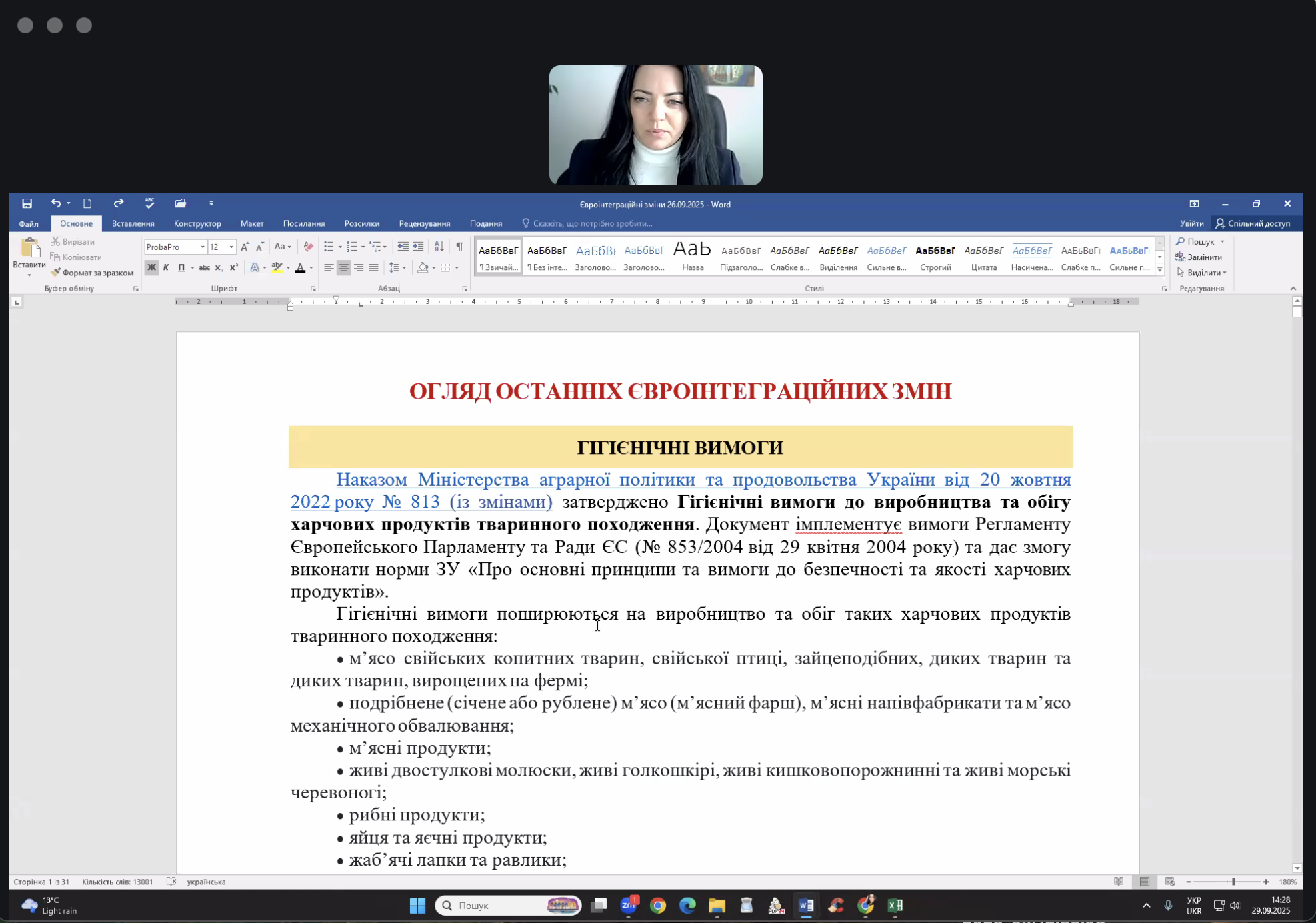 З 29 вересня по 01 жовтня 2025 року у форматі вебінару у Навчальному центрі ДНДІЛДВСЕ пройшла короткострокова програма підвищення кваліфікації, на тему: «Особливості проведення заходів державного контролю на підприємствах з виробництва та/або переробки харчових продуктів».