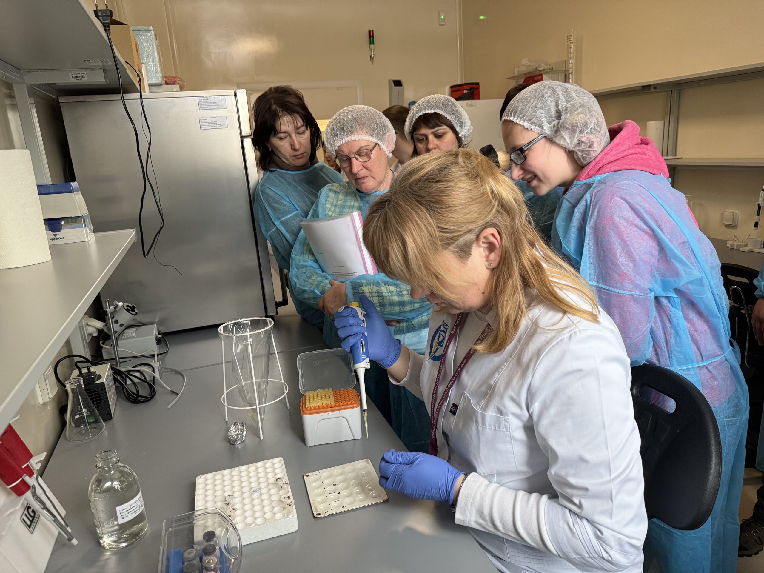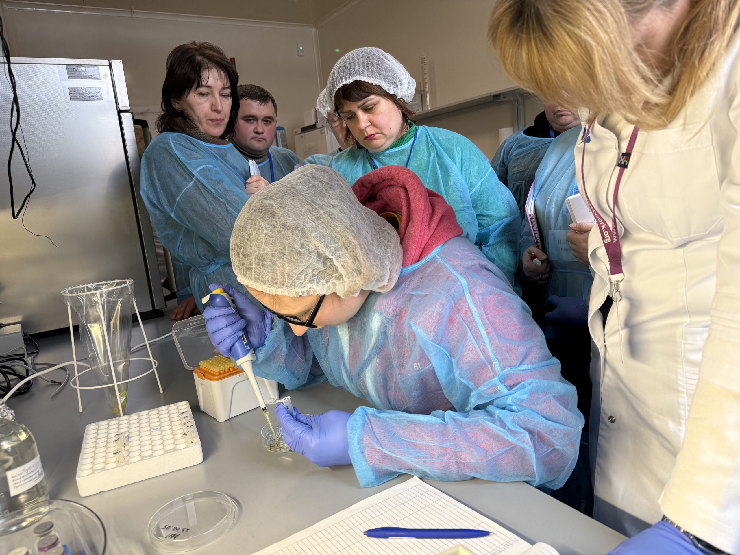 Практична частина навчання проводилася на базі науково-дослідного відділу імунологічних досліджень ДНДІЛДВСЕ. Учасники мали можливість ознайомитися з організацією роботи лабораторії та виконати демонстраційні постановки серологічних реакцій, зокрема: